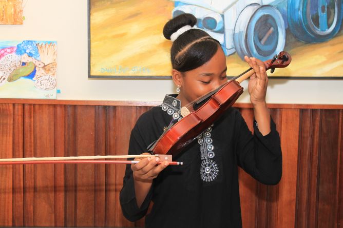 Aaliyah Bernadina is blij met haar nieuwe viool, 2013 (Foto: WRF Curiel)