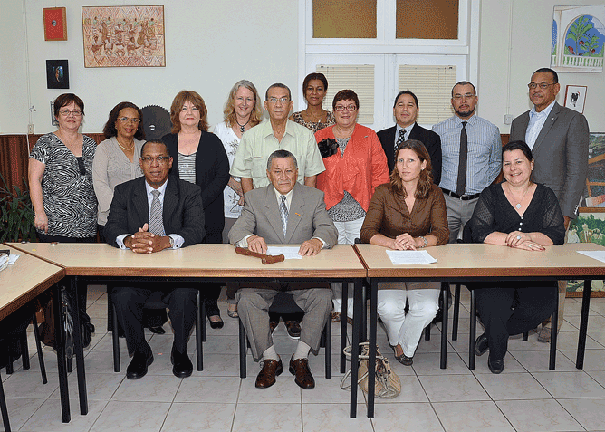 Foto: Het bestuur van het PBCCG op 23 September 2011: staand vlnr Lourdes Croes, Erskine Page-Arrindel, Millicent Smeets-Muskus, Aleida Broertjes, Silvio Jonis, Jorien Wuite, Alice van Romondt, Frendsel Giel, Gianni Schob, Roly Sint Jago. Zittend vlnr Notaris Alexander, Winthrop Curiel, Kandidaat Notaris Baaten, Michèle Russel-Capriles.