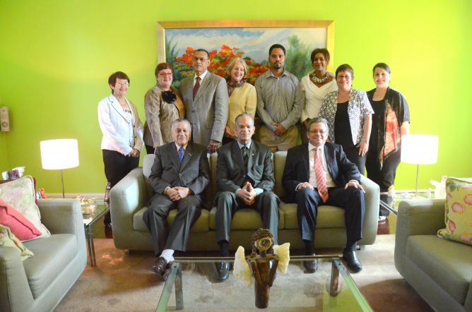 Foto: Bestuursleden na de Plenaire vergadering van 18 November 2011 ten Paleize van de Gouverneur van Curaçao. Staand vlnr Margareth Hage-Barbour, Alice van Romondt, Roly Sint Jago, Aleida Broertjes, Reuben Thompson, Jorien Wuite, Lourdes Croes, Michèle Russel-Capriles. Zittend vlnr Winthrop Curiel, Gouverneur Frits Goedgedrag, Michael de Sola.